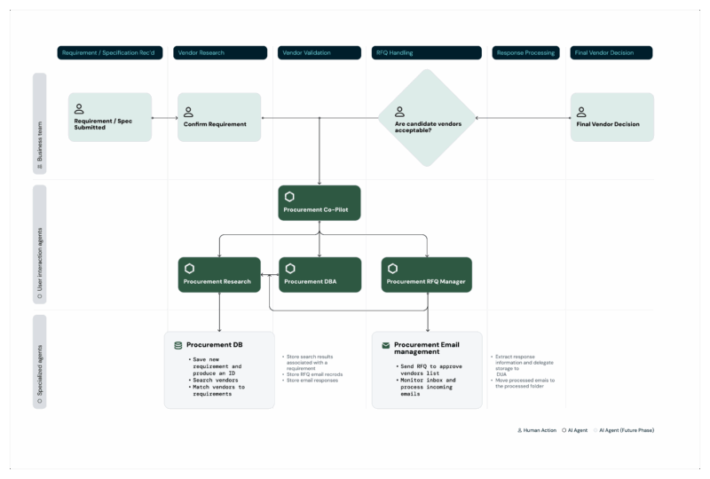 Below is an example of a multi-agent procurement workflow: