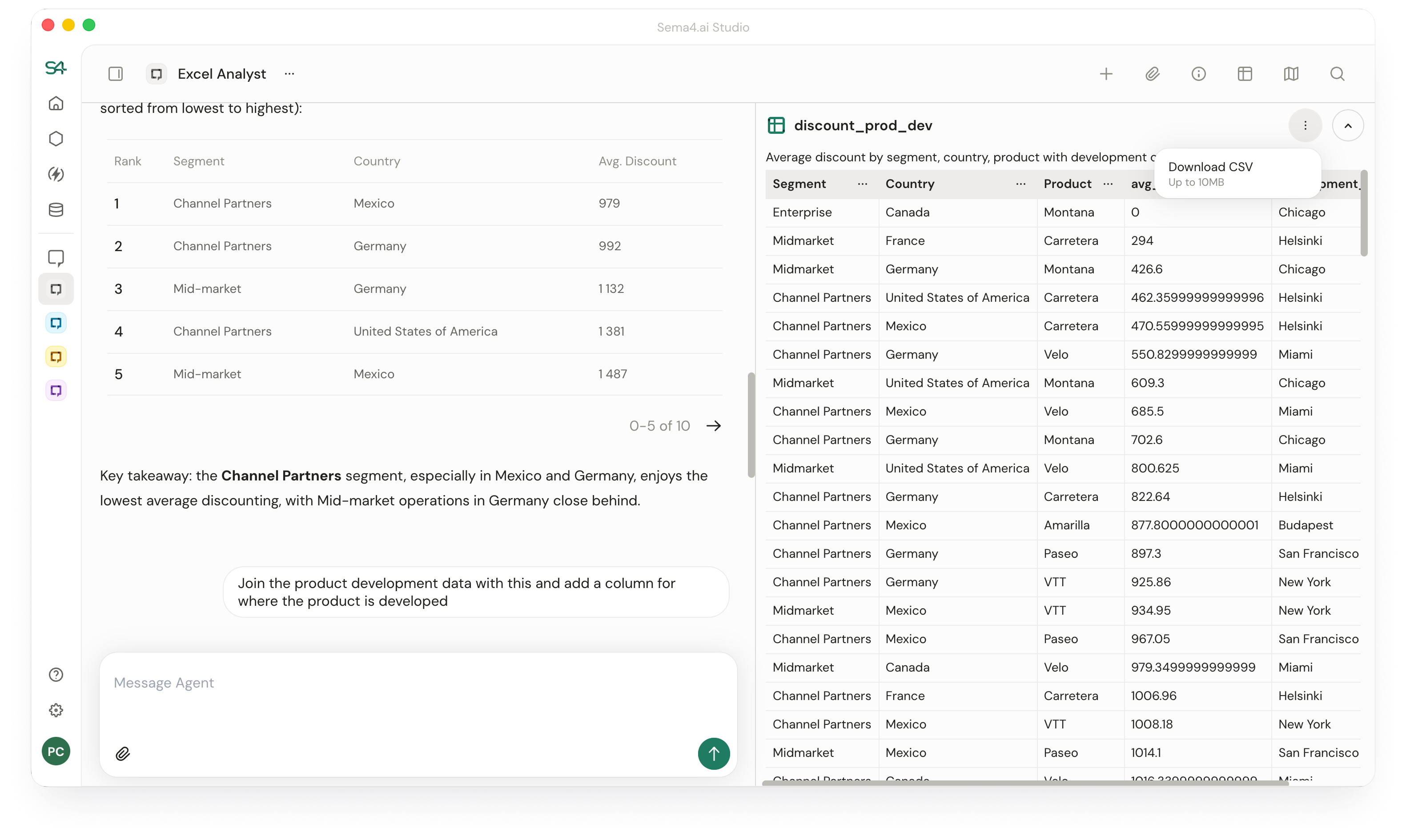 Perform sophisticated data engineering work through conversation – join datasets, reshape tables, and analyze patterns without technical training.
